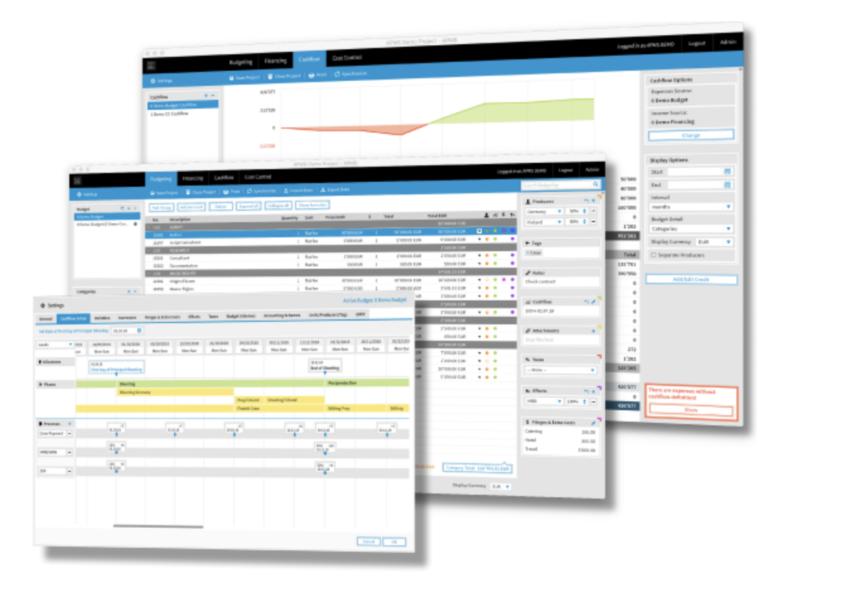Crea planes financieros, registras fuentes de financiación, maneja distintas monedas, hace seguimiento de gastos, control de costes de coproductores, puedes manejarlo en distintas monedas, importar información de contabilidad y crear impresiones personalizadas.